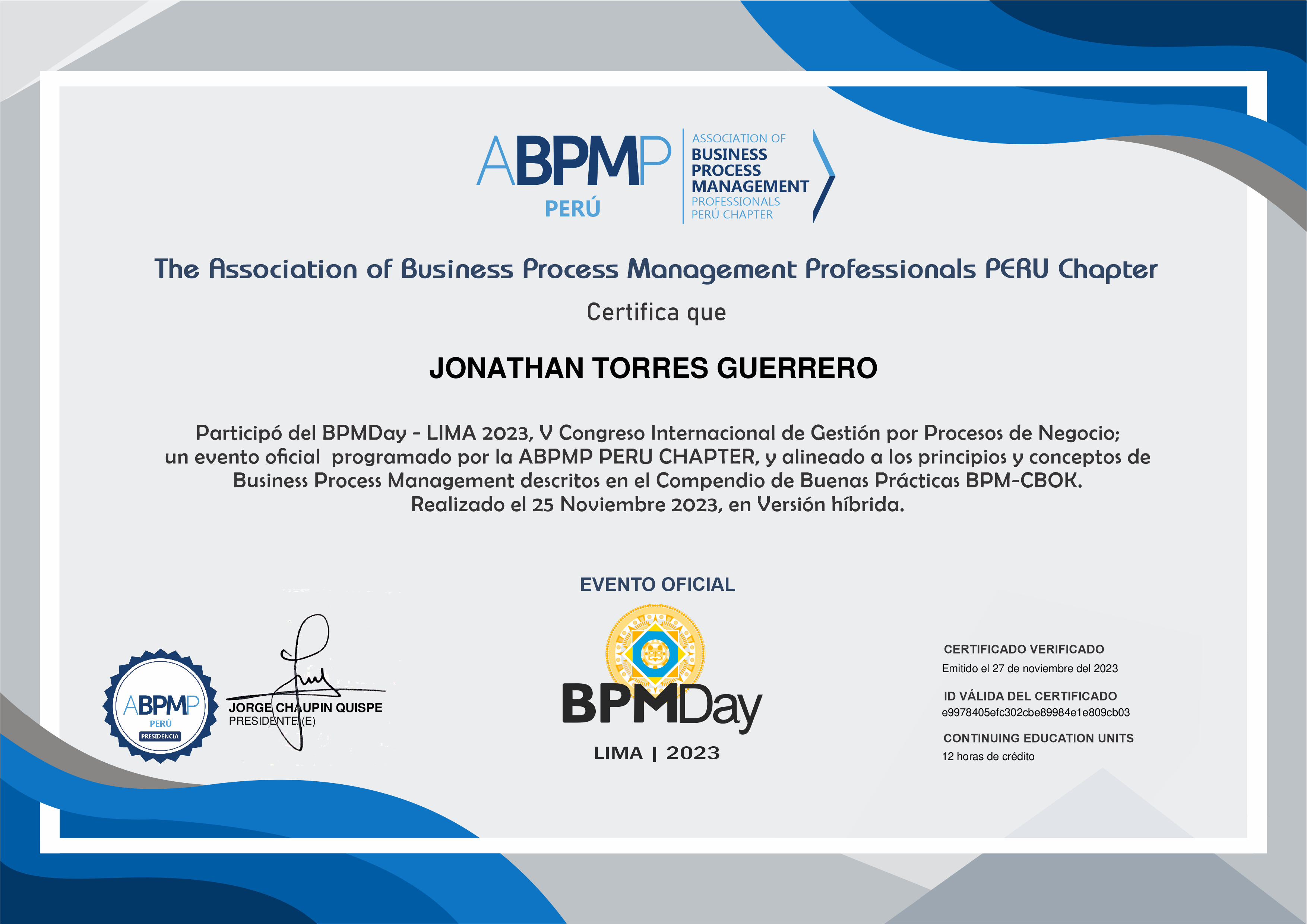 ABPMP PERU CHAPTER es una asociación sin fines de lucro, independientes de proveedores y dedicados a la promoción de los conceptos y prácticas de BPM.