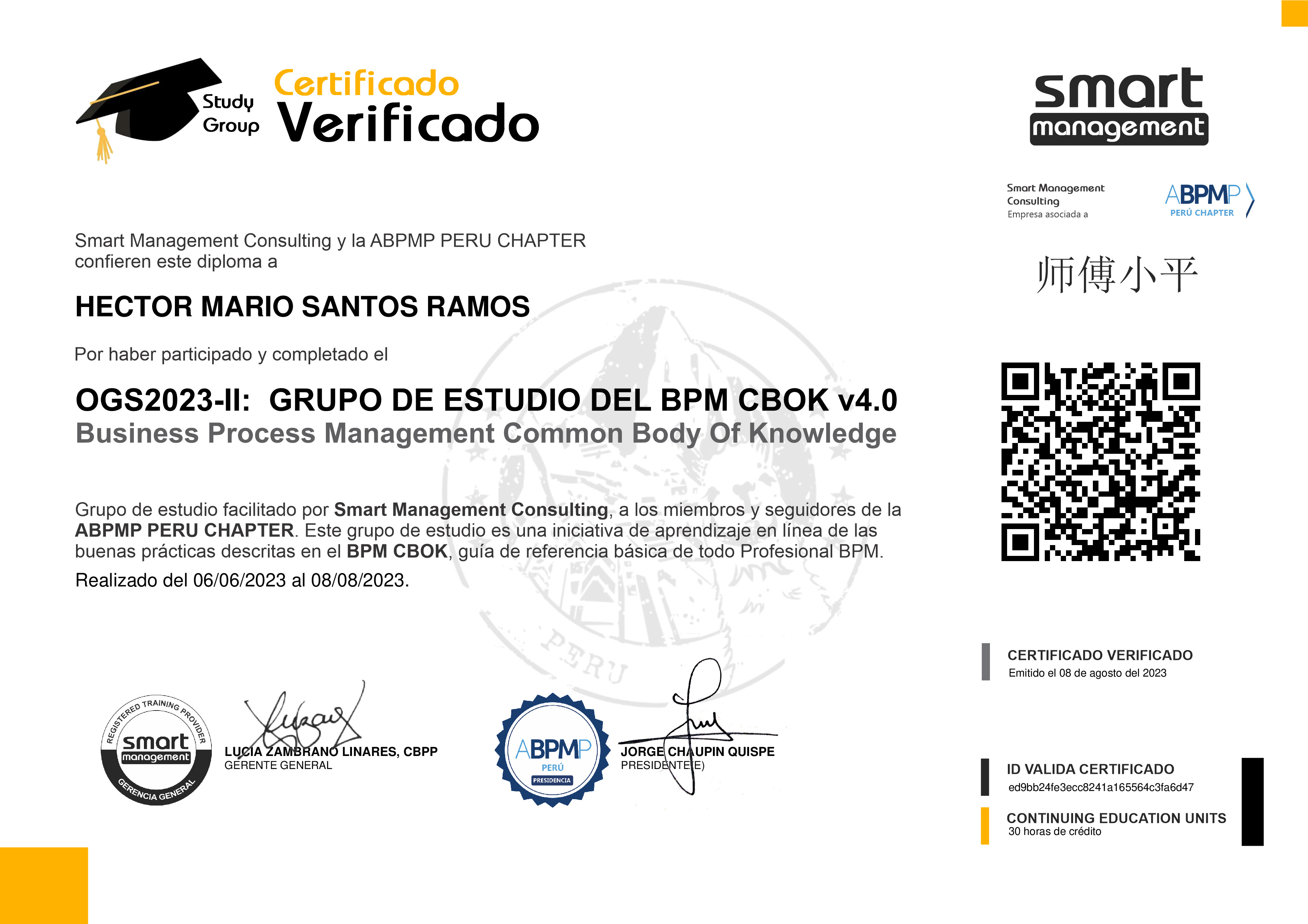 Smart Management Consulting es una consultora asociada a la ABPMP PERU CHAPTER, siendo uno de los brazos ejecutores de la educación continúa de sus miembros y profesionales BPM en general, con el desarrollo de grupos de estudio, cursos, talleres y programas alineados al BPM CBOK.